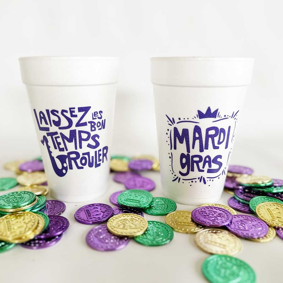 #MardiGrasParty #MardiGrasVibes #LaissezLesBonsTempsRouler #TwoFunnyGirls #CustomPartySupplies #MardiGrasDecor #PartyDetails #FatTuesdayFun #ShopSmall #PartyInspo #CelebrateInStyle #TrendingNow #BestCoffeCupsForMardiGras