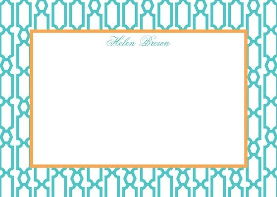Personalized Flat Note Card Stationery {Bead Geometric Turquoise}