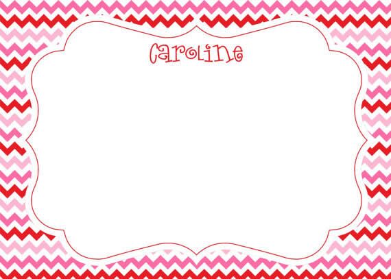 Personalized Flat Note Card Stationery {Chevron Pink & Red}