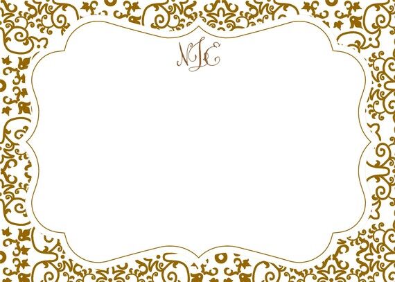 Personalized Flat Note Card Stationery {Chocolate Brown Scroll}