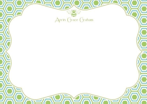 Personalized Flat Note Card Stationery {Honeycomb with Bee}
