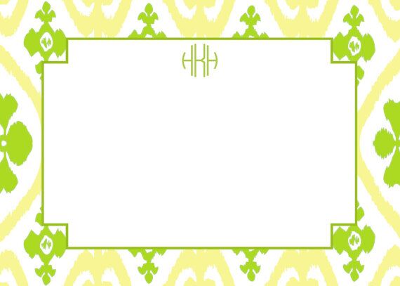 Personalized Flat Note Card Stationery {Ikat Lemon Lime}