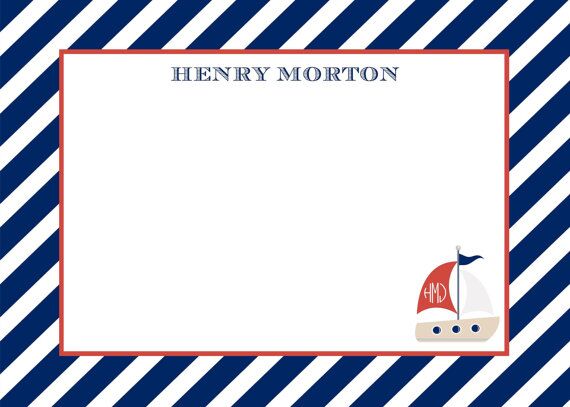 Personalized Flat Note Card Stationery {Nautical Stripe with Sailboat}