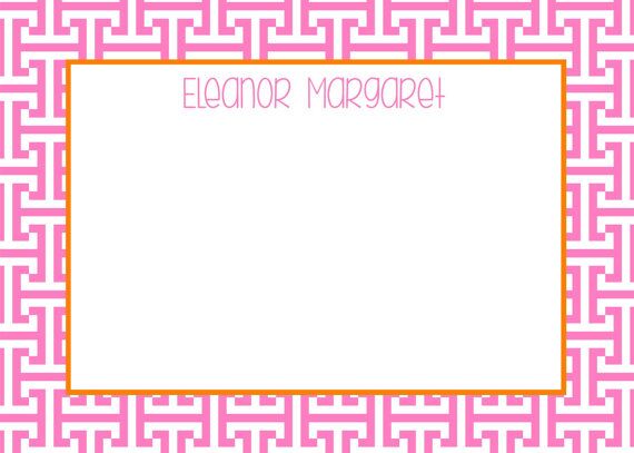 Personalized Flat Note Card Stationery {Preppy Modern Pink}