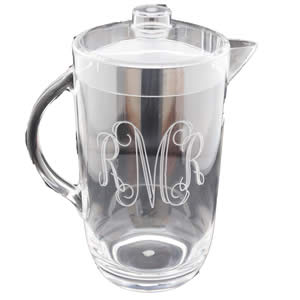 A classic pitcher crafted from lightweight, durable acrylic that is perfect for serving drinks in the backyard or by the pool. From margaritas to iced tea, this 2 quart capacity pitcher makes an easy yet thoughtful gift when you add laser engraved initials.