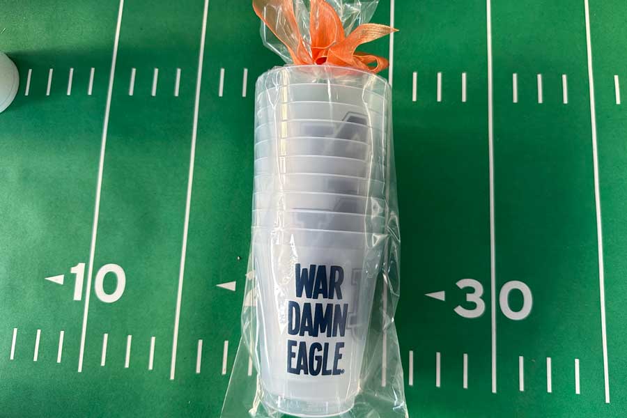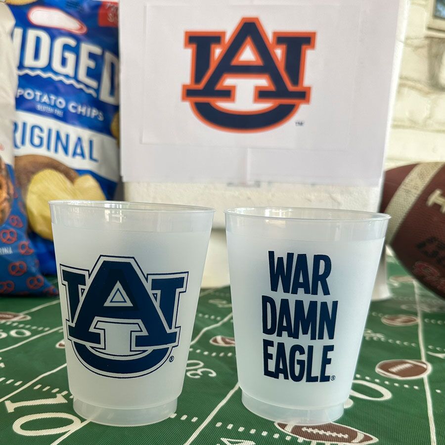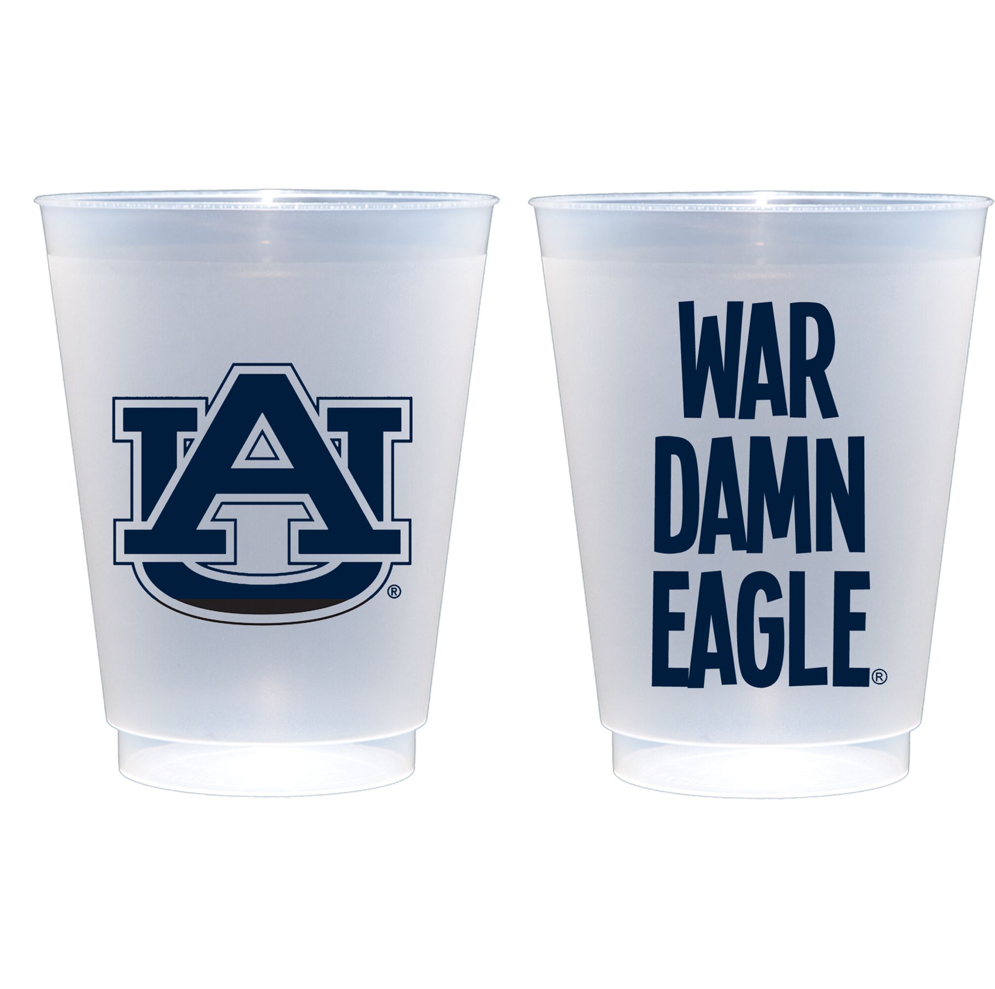 Our Auburn University frosted shatterproof cups show the licensed logos from Auburn University with WAR DAMN EAGLE printed on the back side of each cup. Printed in Tiger blue ink these make a great Auburn Tiger tailgate cup graduation party cup.