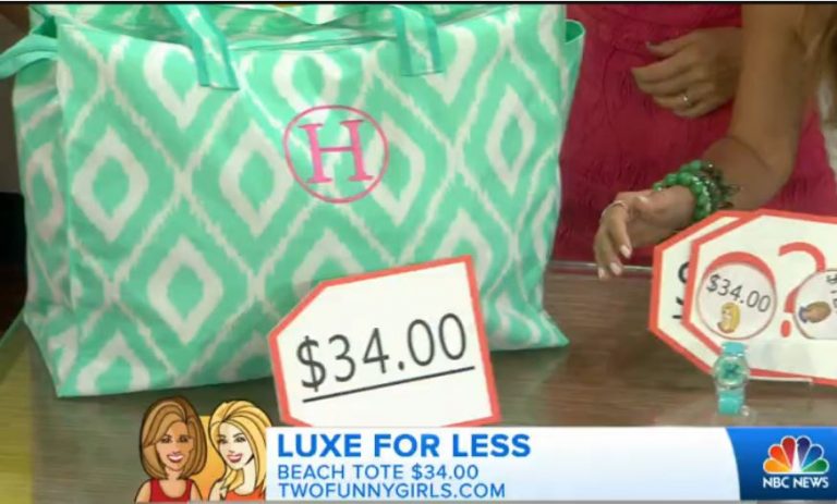 So the first week we got bumped, but that is how it goes in the news biz from time to time. But a short (seemed long) week later, a monogram mint ikat beach bag from Two Funny Girls was on on the TODAY show in a segment with Lilliana Vasquez and her Look for Less segment.