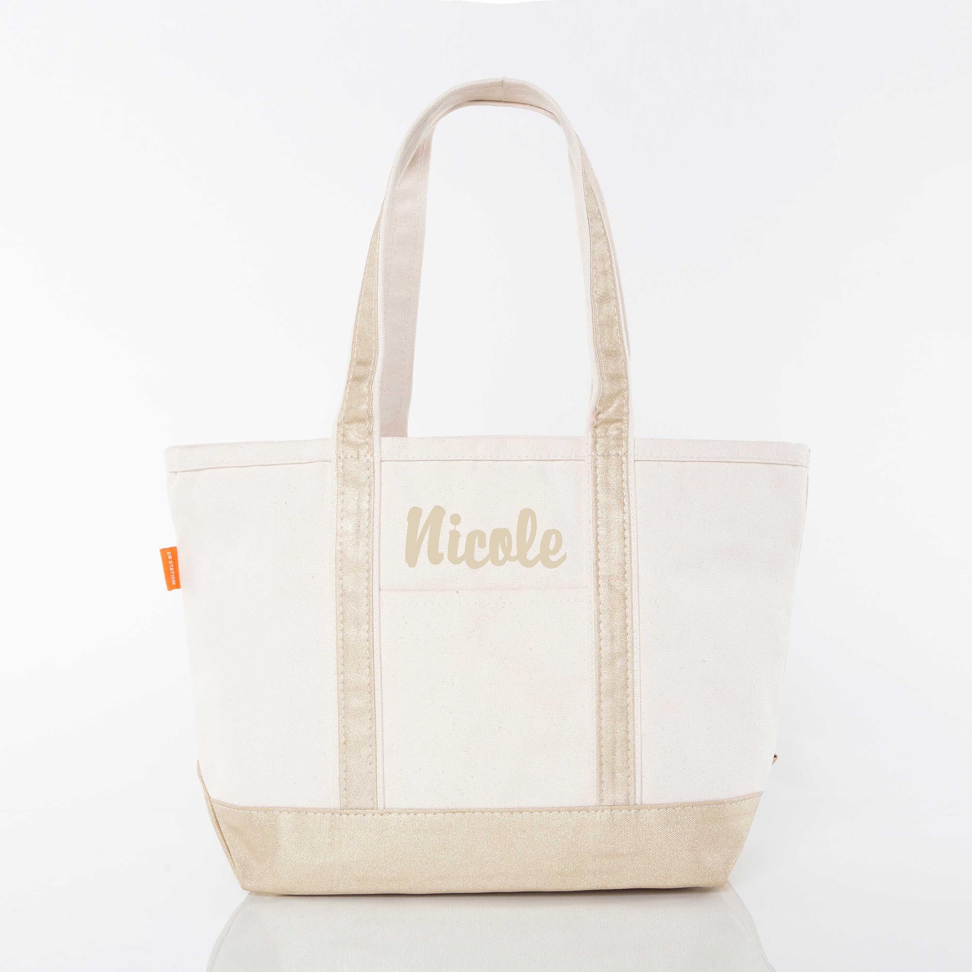 Canvas Tote Boat Bag with Monogram {Metallic Gold}