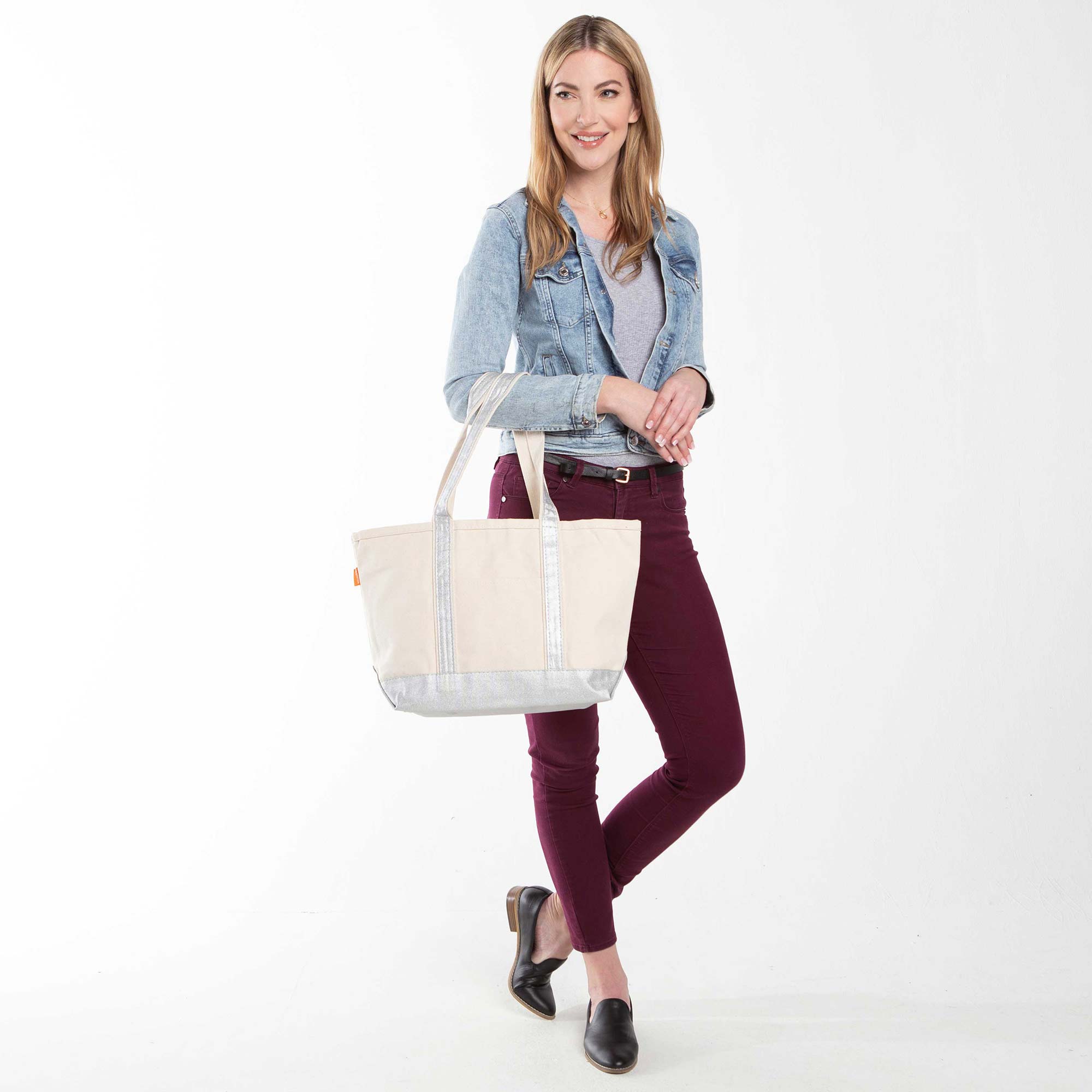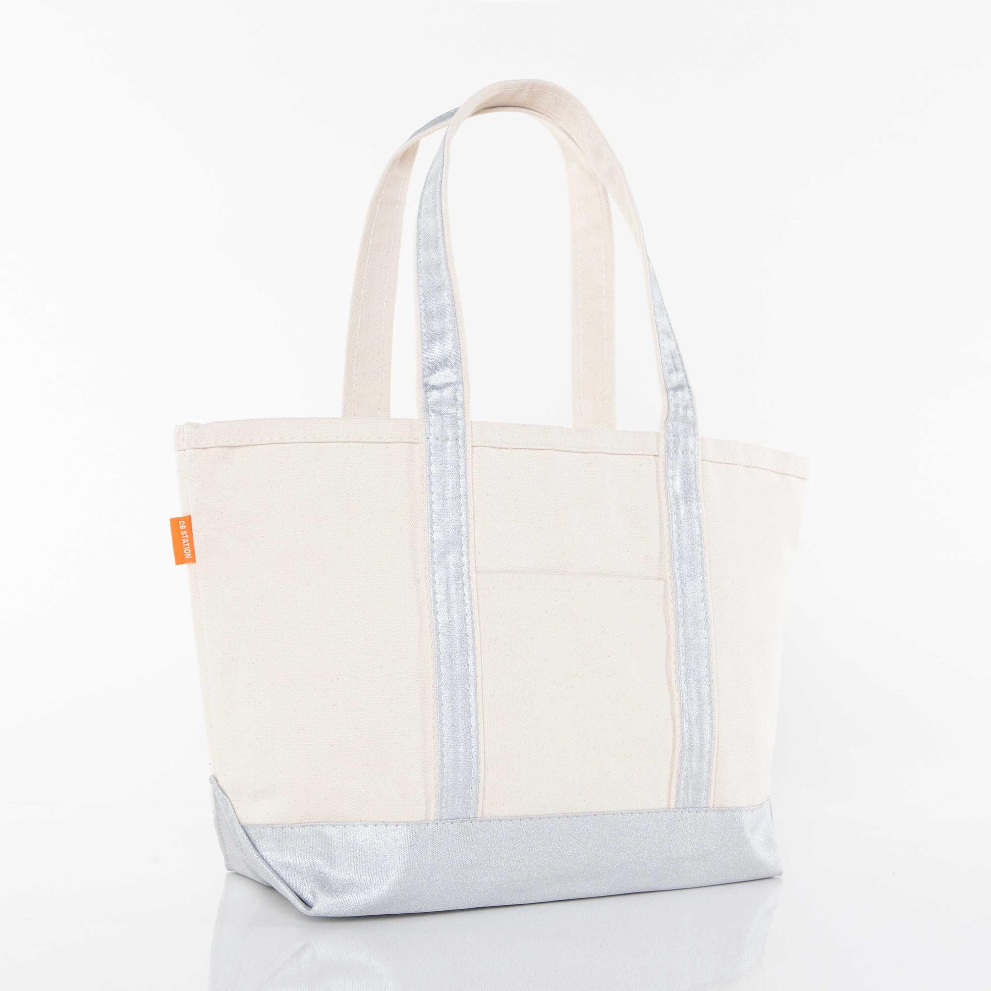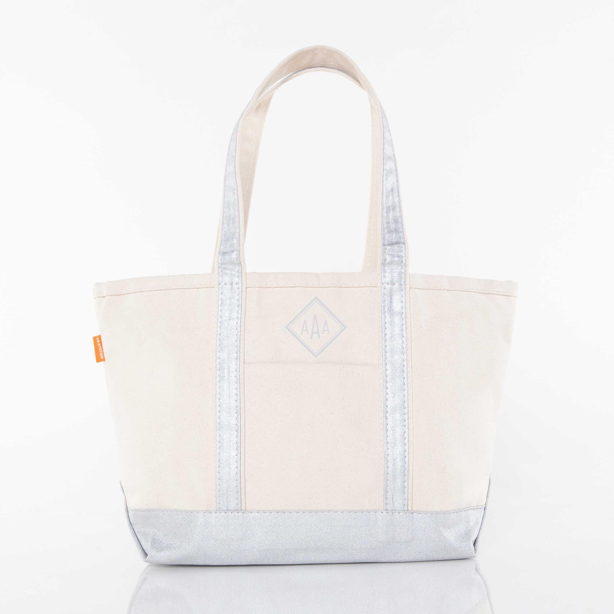 Canvas Tote Boat Bag with Monogram {Metallic Silver}