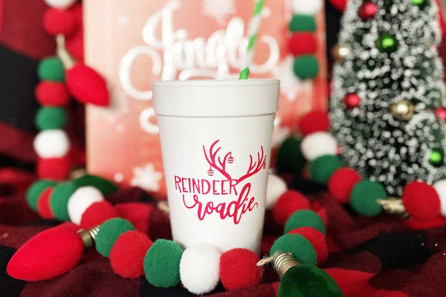 A perfect and affordable addition to your holiday gathering. Our 16 ounce holiday foam cup packs are available in 10 count sleeves. Each “reindeer roadie” sleeve is tied with coordinating ribbon, so they are all ready to give as a gift.