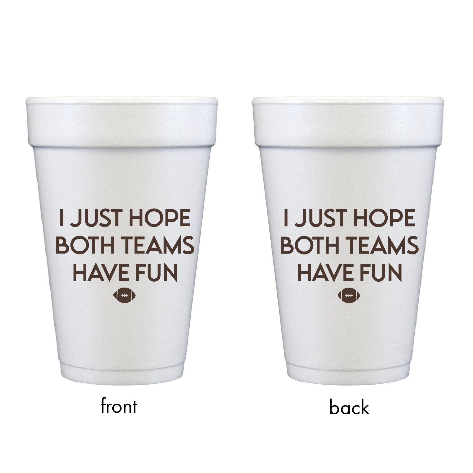Football Tailgate – I Hope Both Teams Have Fun {Disposable Styrofoam Cup 10 Pack}