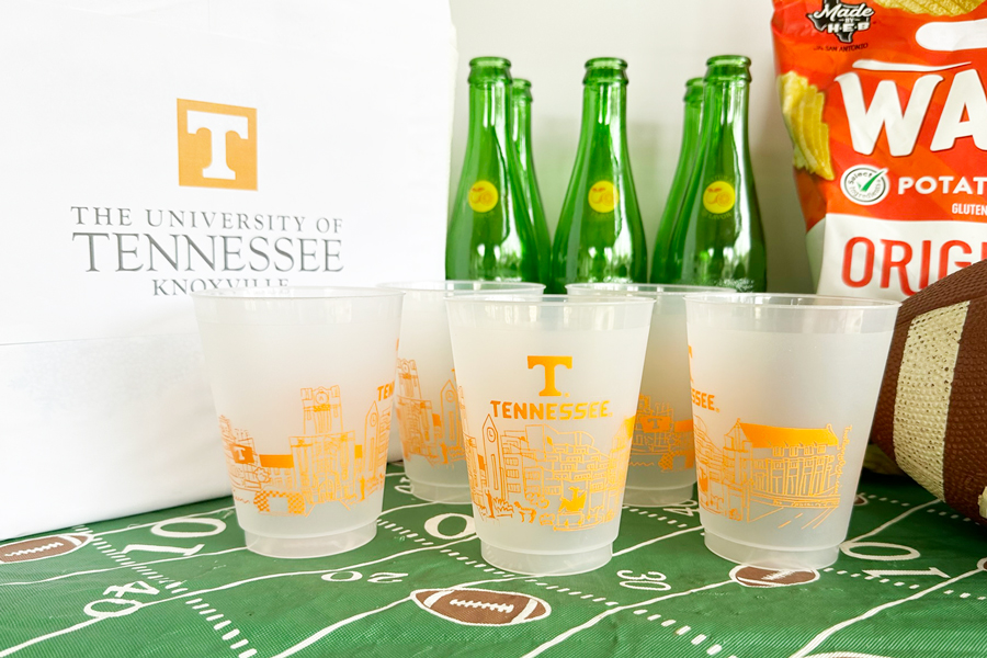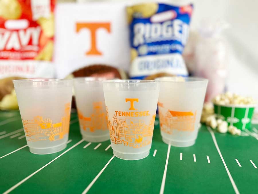 A cute and affordable addition to your University of Tennessee Volunteers celebration with some of the most recognizable landmarks on the UTK campus making the Knoxville, Tennessee campus skyline. These cute frosted plastic cups are are the perfect whimsical touch to your UT Volunteer tailgate or UT Knoxville graduation party.