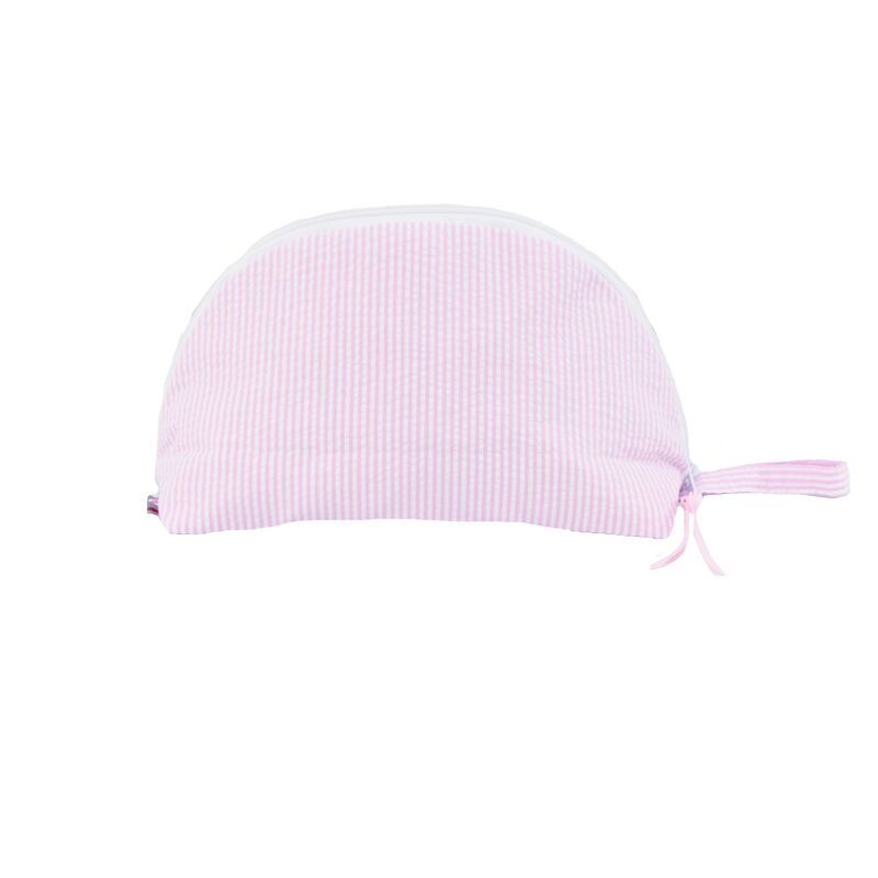 Large Taco Shaped Cosmetic Bag {Pink Seersucker}