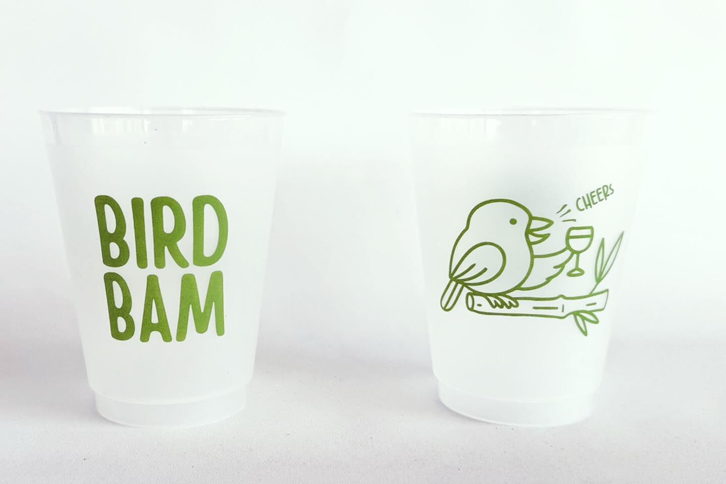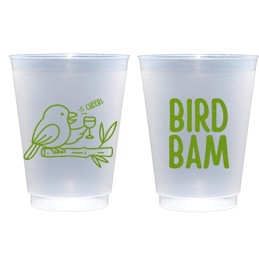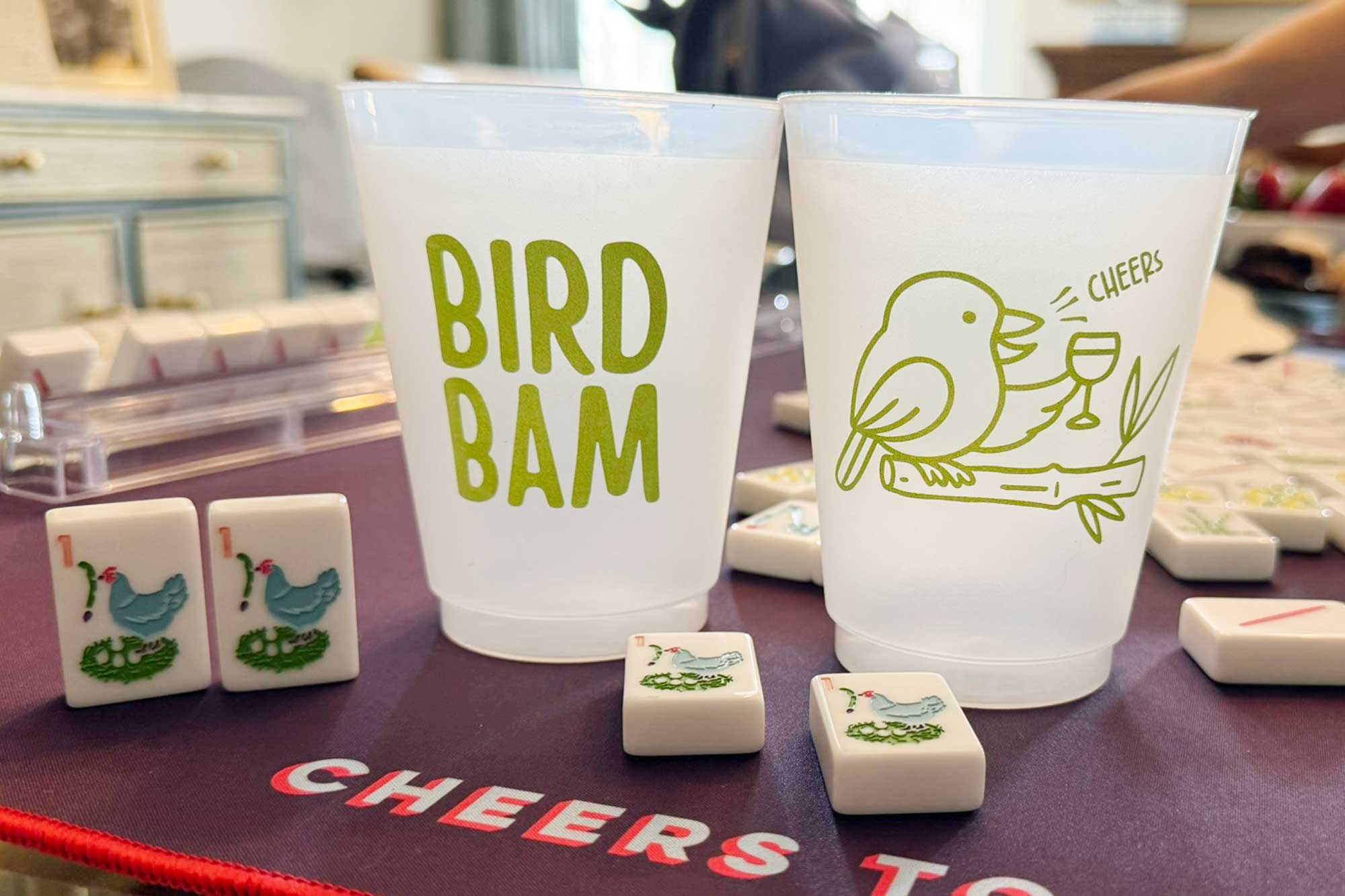 Our bird bam/cheers graphic is mahjong perfect on a 16 oz frosted cup.