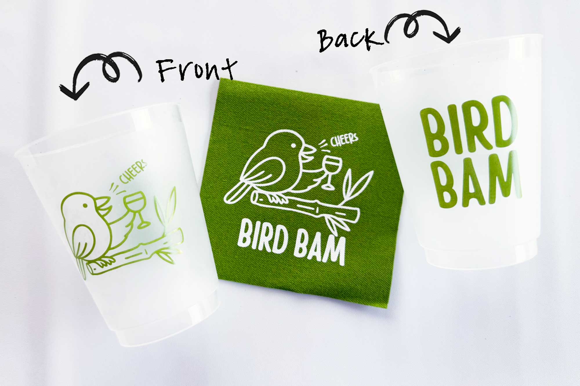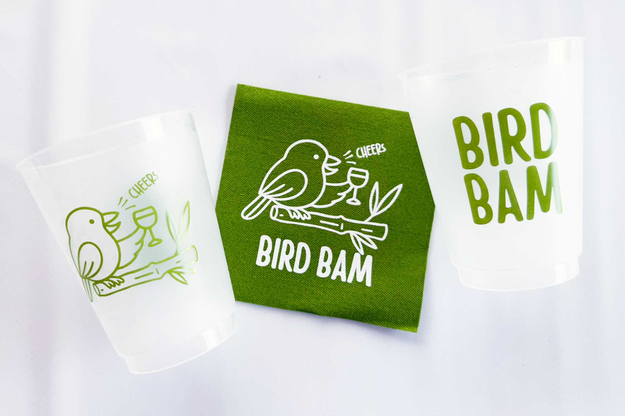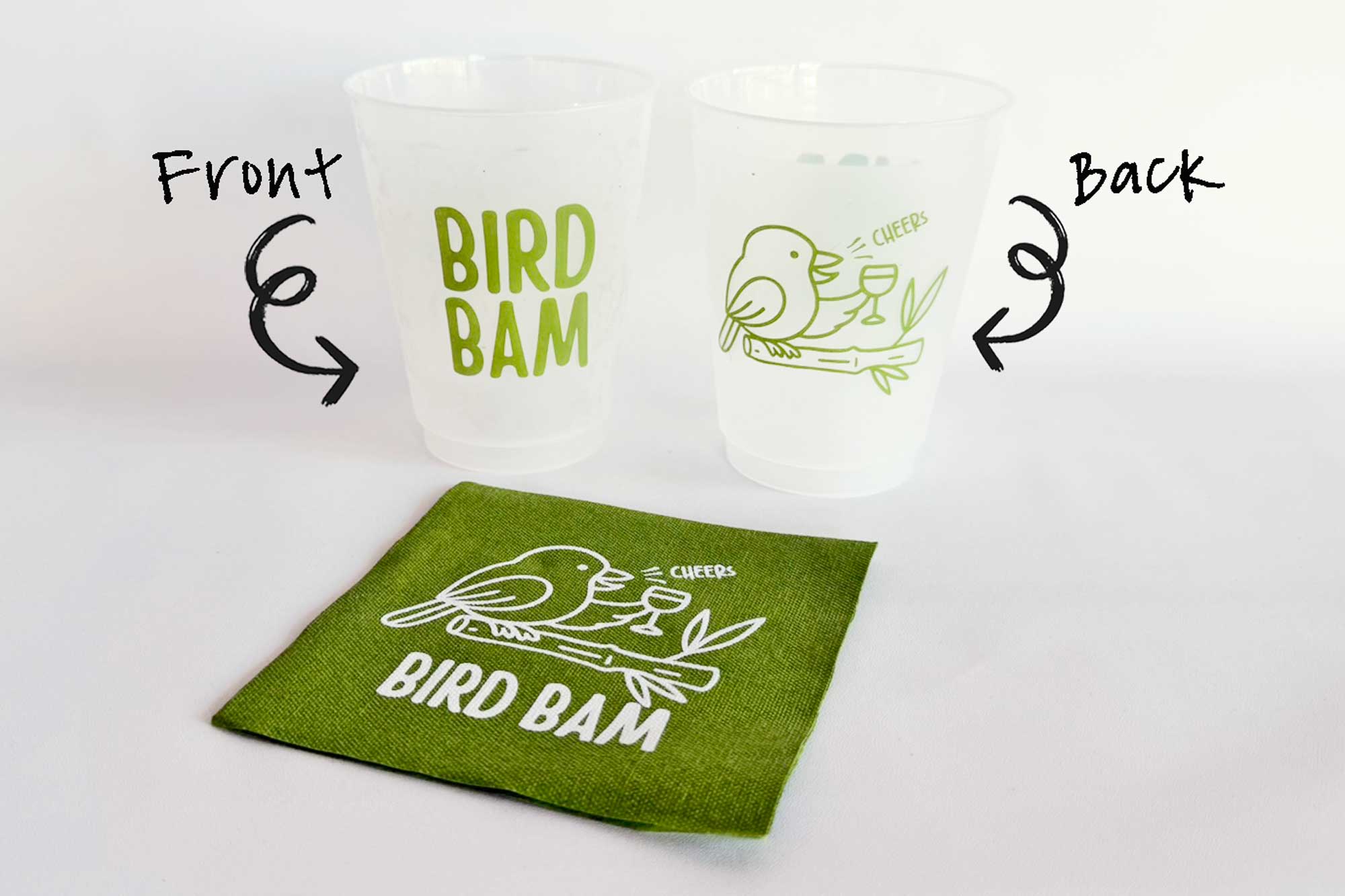 Printed in bam’s signature color of green, these cups are packaged in plastic bags with 8 cups per bag. Matching napkins also available.