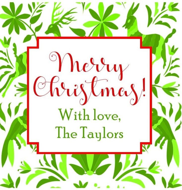 Personalized Christmas Gift Tag Stickers {Green Otomi}