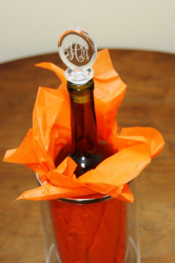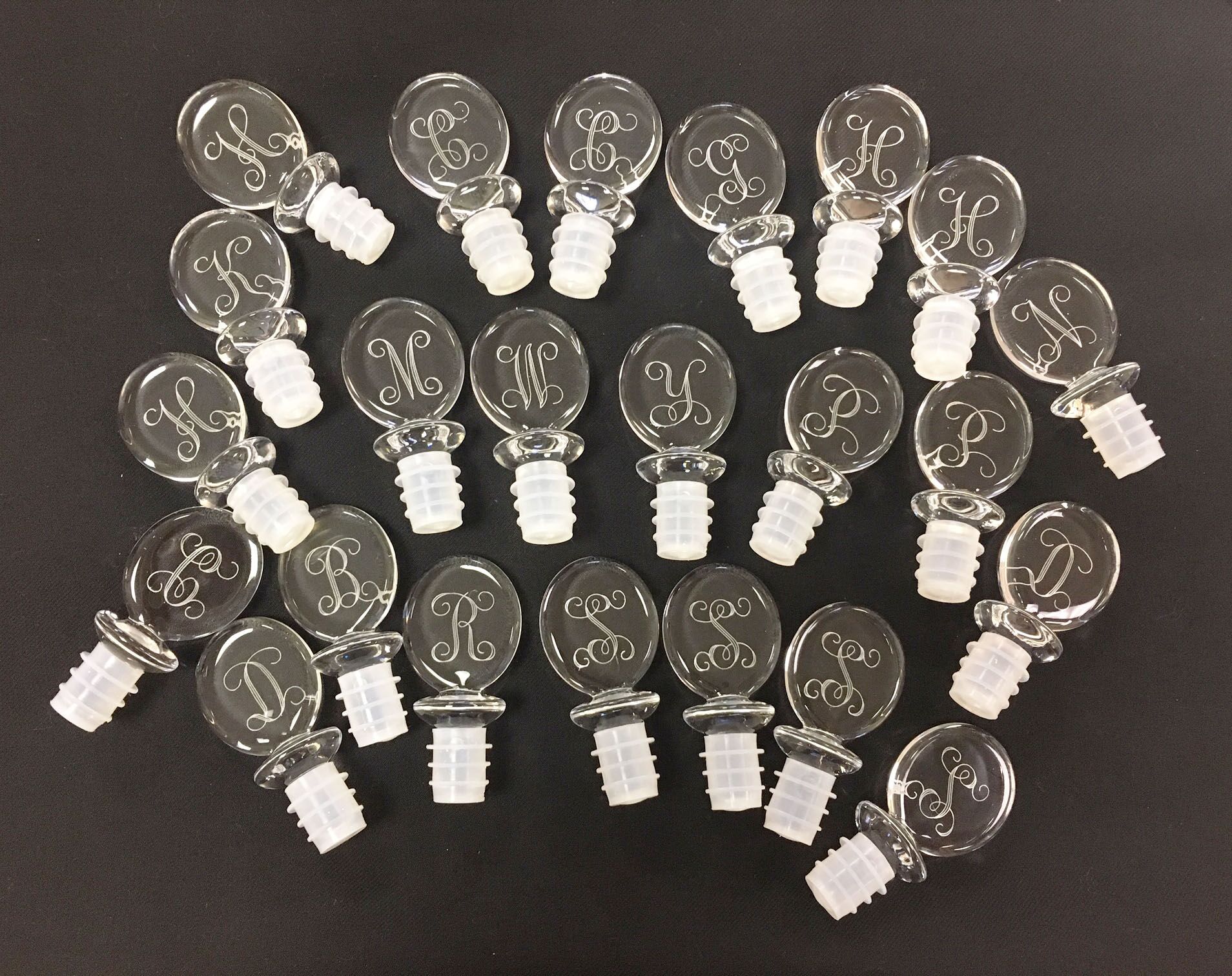 Monogrammed wine stoppers are the perfect hostess, birthday or shower gift that are both unique and affordable! This monogrammed acrylic stopper measures 1 5/8″ x 1 1/4″ x 3. The stopper includes a monogram or single initial in the style of your choice. This makes a great personalized gift for practically any occasion. The monograms are engraved (not a vinyl monogram that will peel off).