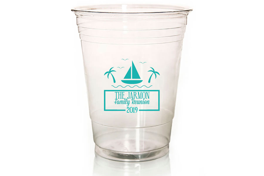 Personalized Clear Soft Sided SOLO-Like Plastic Cups for Family Vacation/Family Reunion