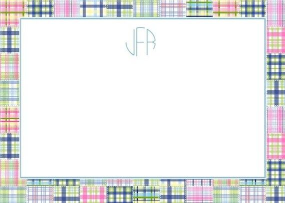Personalized Flat Note Card Stationery {Blue Madras Patch}