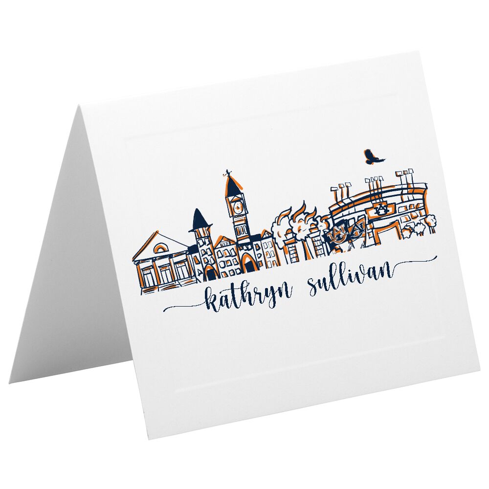 Auburn University Campus Skyline Landmarks-Auburn, Alabama – Personalized Foldover Notecard