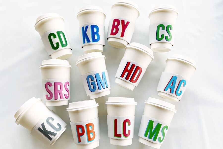 We have blank white paper cups with white traveler lids for an add on purchase. These cups are the size of a Starbucks tall coffee cups. See the detailed mages for photos of a custom insulated coffee sleeve on these cups.