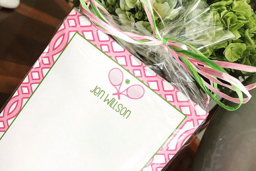 Our personalized note pads just don’t get any cuter. Customize this layout cute tennis design that will be printed on a set of two, 50 sheet notepads measuring 5.5″x8.5″. Each notepad is gummed at the top and backed with chipboard. Your custom notepad will be in the colors shown, but you can add a name, monogram or simple initial – or a mix.