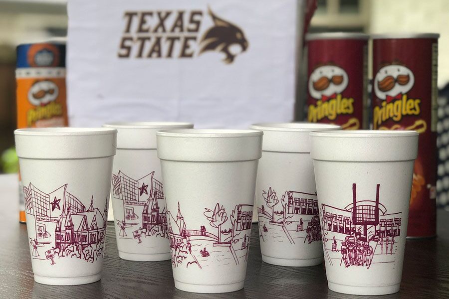 A cute and affordable addition to your Texas State University celebration with some of the most recognizable landmarks on the Texas State University campus making the San Marcos, Texas campus skyline. These cute foam cups are the perfect whimsical touch to your tailgate or Texas State Bobcat graduation party.