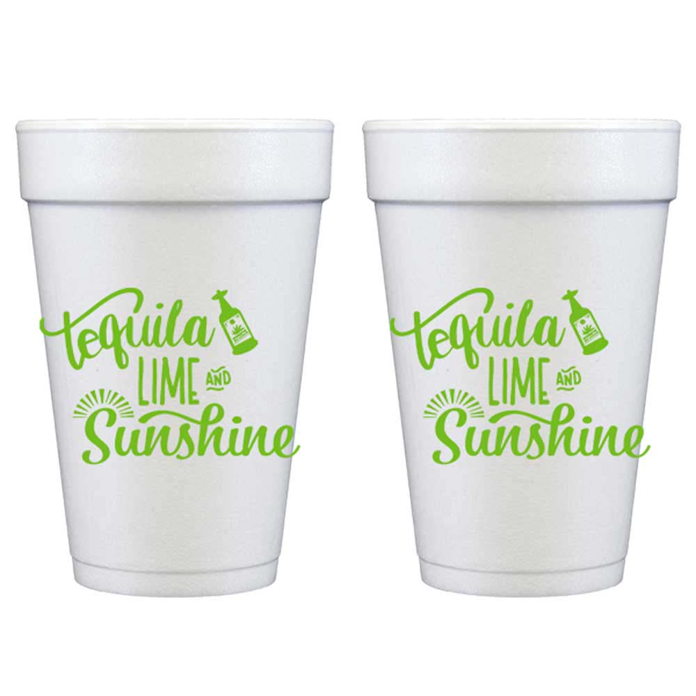 Your ranch water never tested better in our “tequila, lime and sunshine” disposable foam cups. Styrofoam cups are printed in lime green ink and our custom “tequila, lime and sunshine” image is printed on both sides of each cup.