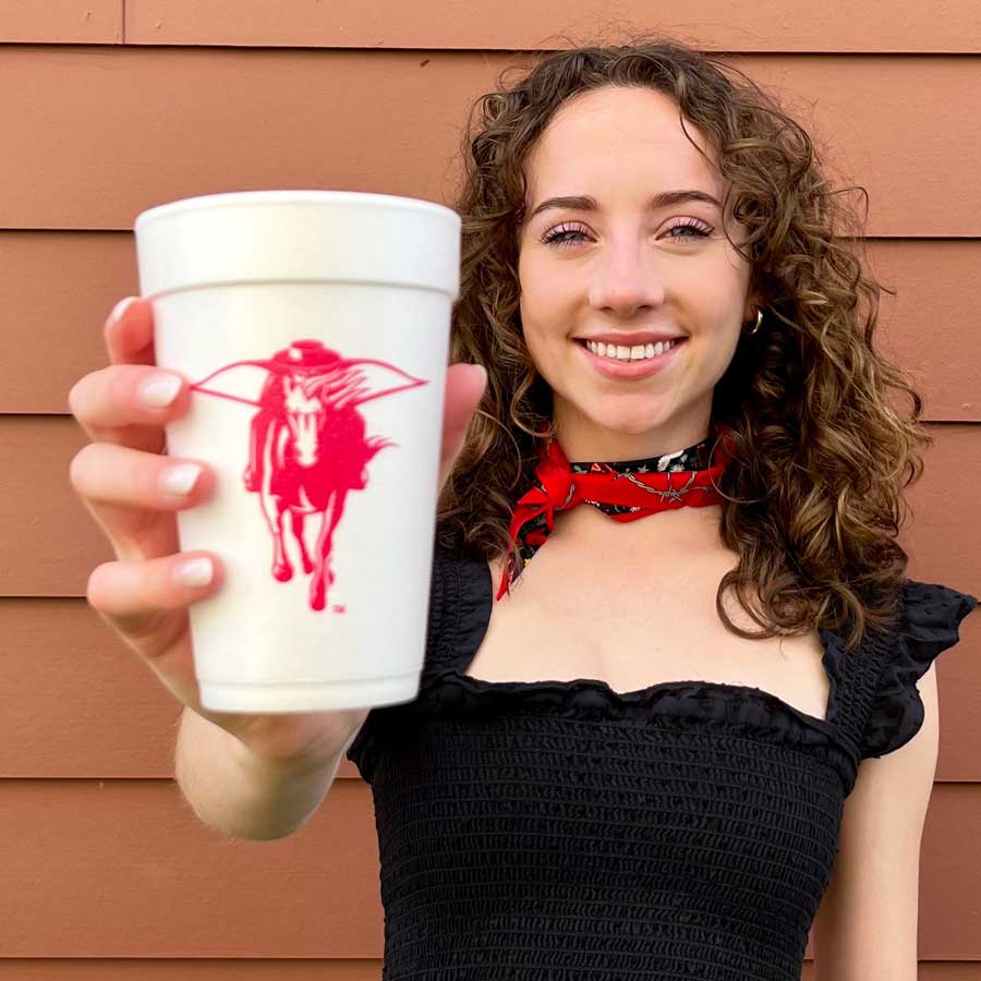 Custom printing available: Looking for a size other than 16 oz or need more than 10 cups and not packaged in bags with a twist tie ribbon? See our bulk printing collegiate logo foam cups page.