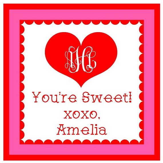 These cute personalized sticker are perfect for sticking onto goodie bags, candy boxes, lollipops, candy bars, or cupcake toppers for instant valentine treats!