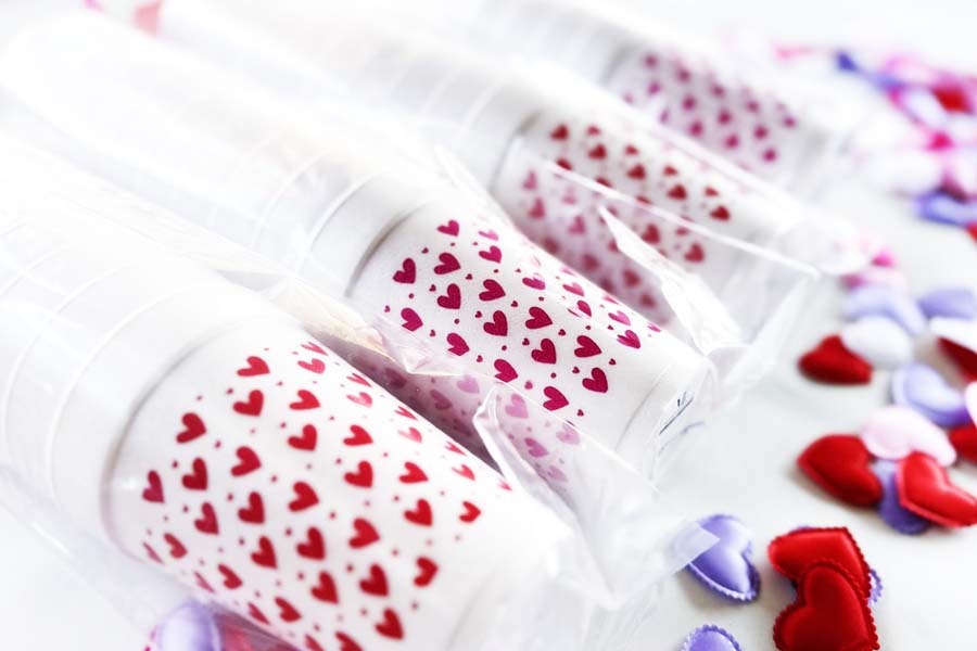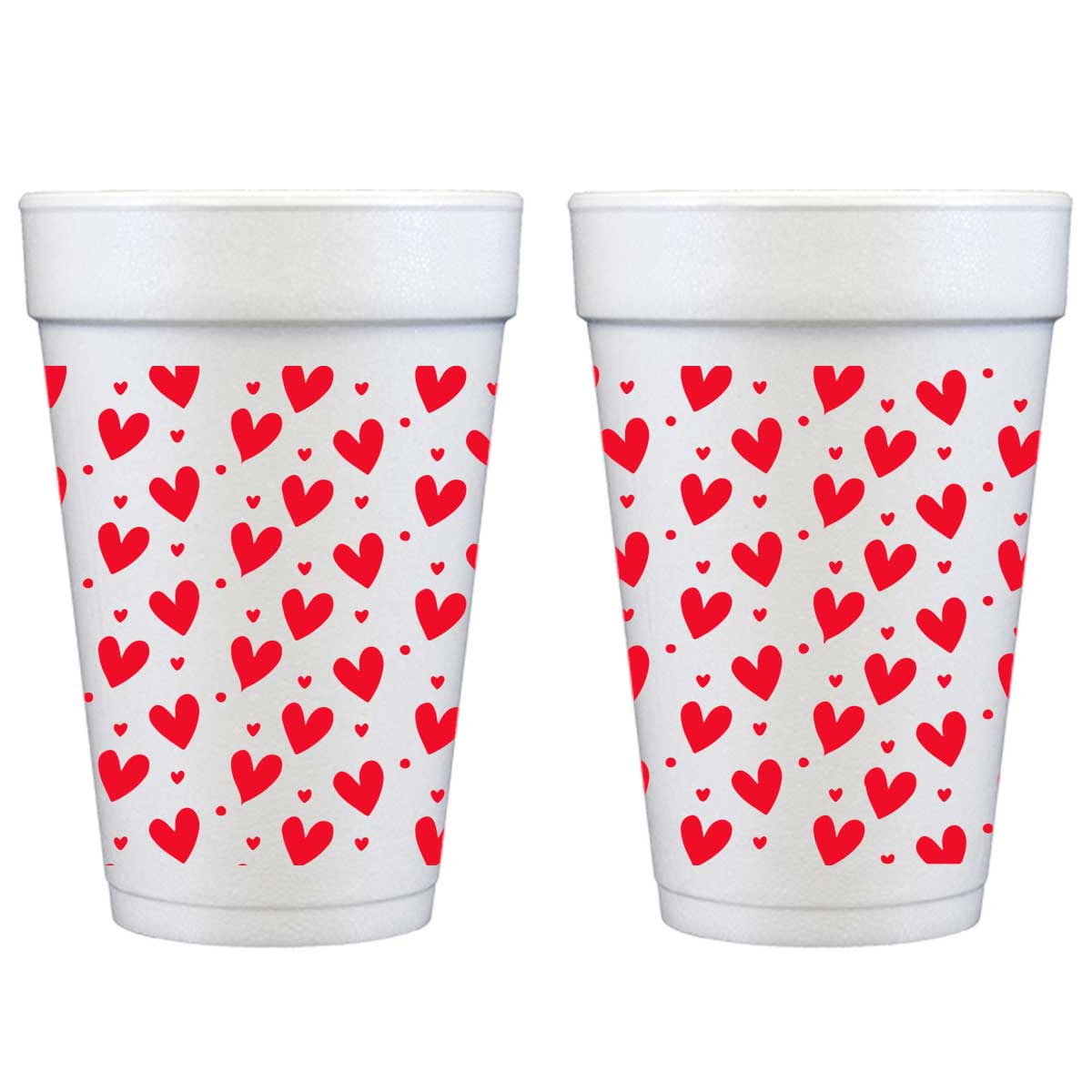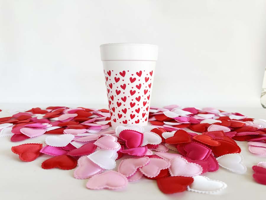 Our Valentine’s Day 16 ounce foam cups are the perfect little gift with a touch of cute whimsy. Printed in RED ink and packaged in plastic bags on 10 disposable cups per bag. Heart art pattern is printed as a wrap around each cup’s print area.