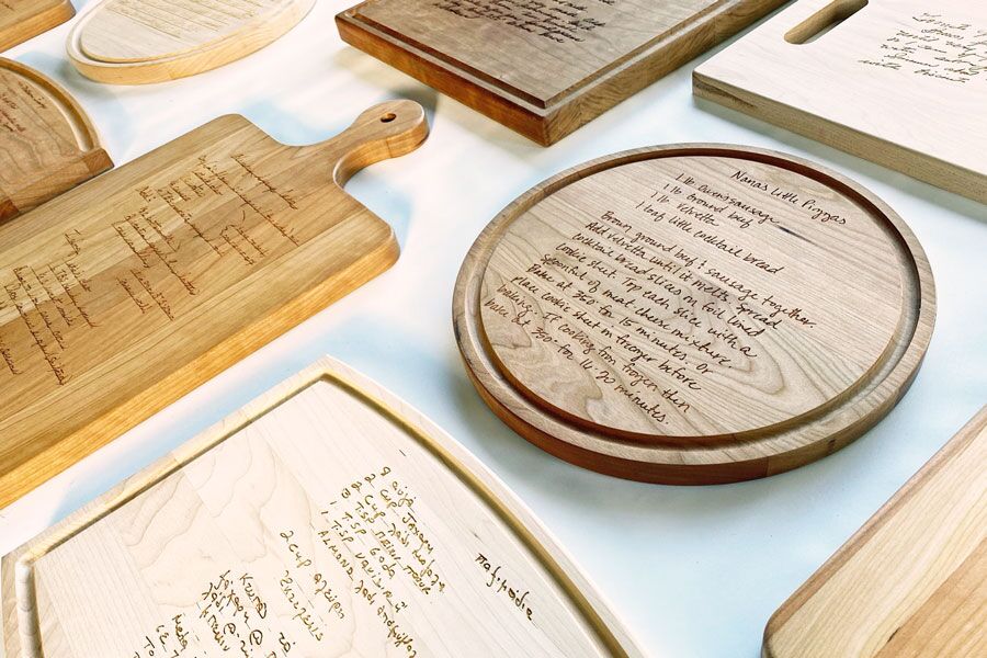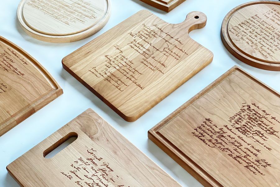 Choose the cutting board shape. The samples are for to select the board shape only, not for wood color.